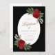Watercolor floral sprays... with gorgeous red peonies, lush greenery, eucalyptus, and baby's breath... surround an oval frame with your baptism details in elegant gold typography. The vibrant reds and greens in the florals set off the rich black, white, and gold elements. RSVP instructions are on the back, under a thoughtful bible verse. Edit text and / or add your own details by following the "Personalise" link. If you would like assistance, or matching pieces, please don't hesitate to reach out to me via message here on Zazzle or email at susanmingaydesigns@gmail.com