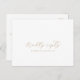 This elegant gold script song request RSVP postcard is perfect for a simple wedding. The minimalist gold and white design features fancy romantic typography with modern glam style. Customisable in any colour. Keep the design minimal and classy, as is, or personalise it by adding your own graphics and artwork. Build your wedding guest list and your dance floor song list all at once! This wedding response postcard conveniently asks guests if they will be able to attend your wedding, and also what song will get them to dance.