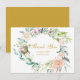Elegant Gold Script Thank You Roses Floral Garland Card