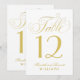 Each table number card must be customised and individually added to the shopping cart. Elegant white and gold design features beautiful script writing with a gold gradient and a wedding monogram that appears with the table number on both sides of the card (two-sided design).