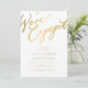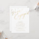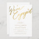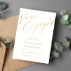 Simple minimal chic whimsical faux gold calligraphy clear white we're engaged script engagement party invitation.