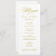 Elegant and formal wedding dinner menu cards feature a stylish script and scroll details with a vintage inspired design. White with gold digitally printed colour. Choose a shimmer cardstock to add a shimmery metallic affect to the lettering. Personalise the custom monogram with the bride and groom names, event date, and menu details. Text and background colour can be modified to coordinate with your wedding colour scheme.