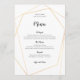 Menu cards for your wedding tables with an elegant and minimalistic design comprising a gold geometric frame with classic black typography. The text is easily personalised and the background and text colours can be changed if you so wish to coordinate with your wedding theme. A geometric pattern is also on the reverse and can be removed if required via the further customisation link.