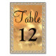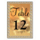 Elegant table number cards featuring a faux gold border and a beautiful faux pink glitter background.
