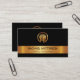 An elegant black cover is accentuated by a faux gold stripe column near the base of the card. The gold layer houses your prestigious name and job title. Over at the top is a faux gold cutlery plate logo you can use.