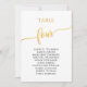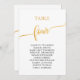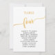 These elegant gold table number 4 seating chart cards are perfect for a simple wedding. The neutral design features a minimalist card decorated with romantic and whimsical faux gold foil typography. The card prints on the front and back (double-sided).