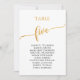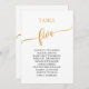These elegant gold table number 5 seating chart cards are perfect for a simple wedding. The neutral design features a minimalist card decorated with romantic and whimsical faux gold foil typography. The card prints on the front and back (double-sided).