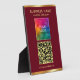 Custom Upload Your Business Company Logo QR Code Here Add Text Elegant Modern Burgundy Red Template 5 x 7 Vertical Design Tabletop Plaque with Easel.