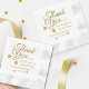 Elegant and stylish wedding party napkins with gold thank you typography and golden hearts. Personalise with bride and groom names and wedding date.