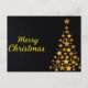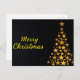 Elegant Gold Tree Merry Christmas on Black Postcard