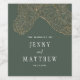 Modern and elegant wedding wine label featuring gilded hand drawn tropical greenery of banana leaves. The lines of the palm leaves are in faux gold glitter. The background is green. Customise this product by adding your own wedding information. Great for destination or beach wedding in the summer.