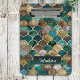 Elegant gold turquoise green girly mermaid scales Clipboard. To make it extra special, it is also monogrammed and personalised with name or initials or any text you like, click the "customise further" link and use the design tool to modify the design if you like.