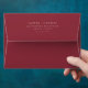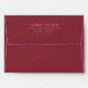 This elegant wedding envelope features a minimalist design with a rich maroon background and gold typography. The layout is clean and centred, showcasing the names and address in a sophisticated serif font that exudes luxury and formality. Perfect for weddings or significant announcements, this design emphasizes simplicity and elegance, making it ideal for those who appreciate classic yet modern aesthetics.