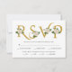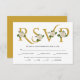 Elegant gold typography and white roses RSVP card with meal choice. This elegant wedding design features the "RSVP" in a decorative relief font in goldwith white roses. The back is of solid gold colour.