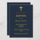 Elegant Gold Typography Cross Baptism on Navy Blue Invitation