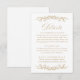 Add a touch of classic romance to your suite with this Elegant Gold Victorian Floral Baroque Wedding Details Card. “Details” is displayed in graceful calligraphy, with your wedding information is shown in traditional serif lettering. Decorative floral borders with elegant baroque scrollwork at the top and bottom bring a warm, European-inspired feel that pairs beautifully with refined and romantic stationery.
