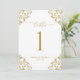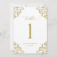 Elegant 5x7 Gold Wedding Table Numbers: Use these vintage, classic table numbers at your wedding reception or event. This design features the word "Table" in an elegant calligraphy with an ornate vintage corners design for a luxe look. It's set in gold, but you can change the colour to anything you like! View matching elegant vintage gold wedding products below.