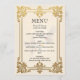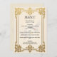 Beautiful elegant gold wedding menu card featuring luxurious gold foil accents and ornate border details on sophisticated cream background. Perfect for formal wedding receptions and dinner parties. Coordinates seamlessly with our luxury gold wedding invitation suite. Fully customisable with your menu items and wedding details. Premium quality wedding stationery.