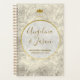 Modern calligraphy, elegant, simple grey marble wedding planner book with gold crown monogram - bride and groom initials.