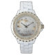 Elegant, gold and white, faux marble face front of watch with black roman numerals. Optional template for a name.