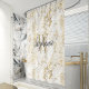 Elegant Gold White Marble Monogram Script Shower Curtain