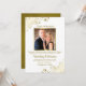 This beautiful wedding invitation is stylish, simple and elegant. It features gold script lettering on a classic white background with floral faux foil filigree in each corner. The design includes your photo of picture in a golden frame along with all of the important details. The back has a customisable QR code and details note so you can direct your guests to a website for information and RSVP.