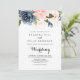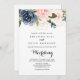 This elegant gold winter floral front and back wedding invitation is perfect for a simple wedding. The design features beautiful hand-painted dark blue, blue, navy, pink , blush, gold flowers and green foliage, bunched into elegant bouquets.