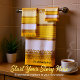 Personalise romantic modern elegant gold with yellow and white Stripe .Customise Your black background Colour and monogram bath towels