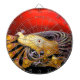ELEGANT GOLD YELLOW PEACOCK IN RED DARTBOARD