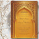 Celebrate your wedding in style with this elegant Wedding invitation featuring beautiful golden Islamic Archway with the words "Bismillah Ilrahman Ilrahim".