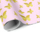 Elegant Golden Butterfly In Pink Wrapping Paper
