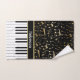 elegant stylish design for the piano player or musician featuring golden coloured musical notes and a piano keyboard on a black background with gold and black strip to add the name of your choice to create a unique personalised music themed gift