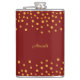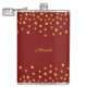 Elegant Golden Confetti on red Personalised Flask. Text name ready to be personalised.