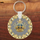 A beautifully decorated golden crown with intricate designs encircled by a floral pattern, symbolising royalty, luxury, and celebration, set against a soft, neutral background enhancing its regal elegance.