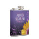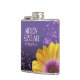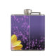 Elegant Golden Daisies with Purple Glitter Wedding Hip Flask