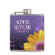 Commemorate your special day with this floral-themed wedding flask, which features elegant white lettering with lavender purple confetti and golden African daisies on a violet purple to black background. Customise with the newlyweds' names, and wedding date. A great party favour for guests, and a wonderful keepsake for floral wedding themes!