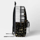 An elegant stylish design for the piano player or musician featuring golden coloured musical notes and a piano keyboard on a black background with gold and black strip to add the name of your choice to create a unique personalised music themed gift for any occasion
