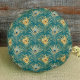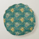 Elegant Golden Peacock Feathers on Boho Green Round Cushion