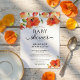 Elegant Summer Golden Poppy Baby Shower Invitations. Delicate watercolor poppies frame the edges of this summery baby shower invitation. Easily customise to change the year, names, fonts, etc. Please contact us at cedarandstring@gmail.com if you need assistance with the design or matching products.