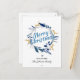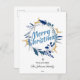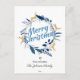This elegant Christmas card features a wreath with golden reindeer and blue and grey greenery. Merry Christmas is written in a beautiful handwritten script. Personalise this card by adding names and year.