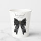 Gothic Baby Shower Paper Cups, a perfect blend of sophistication and dark elegance. Design features a beautiful black lace coquette bow, adorned with a golden skull, adding a touch of gothic elegance to your celebration Personalise with customised text for that special touch.