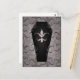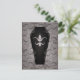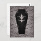 A post card with an elegant black gothic coffin with a grungy damask background pattern on it. Write your Halloween greeting on the back.