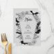 Embrace the enchantment with this Gothic Wedding menu, perfect for a Halloween wedding. This modern, elegant design combines a boho-dark aesthetic with a moody, spooky vibe, capturing the essence of an October celebration. Intricately adorned with bat and spider web motifs, alongside delicate floral elements, this wedding menu showcases a striking black-and-grey colour palette. Set the tone for your special day with a unique blend of haunting beauty and timeless elegance.