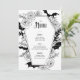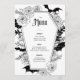 Embrace the enchantment with this Gothic Wedding menu, perfect for a Halloween wedding. This modern, elegant design combines a boho-dark aesthetic with a moody, spooky vibe, capturing the essence of an October celebration. Intricately adorned with bat and spider web motifs, alongside delicate floral elements, this wedding menu showcases a striking black-and-white colour palette. Set the tone for your special day with a unique blend of haunting beauty and timeless elegance.