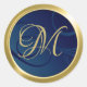 Elegant Gradient Swirls Monogram Navy Blue Gold Classic Round Sticker