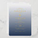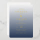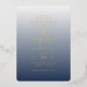 This elegant wedding invitation features a sophisticated rectangular layout with rounded corners, showcasing a gradient background that transitions from light cream to deep navy blue. The design employs a refined serif font in gold, creating a luxurious and formal appearance. With ample negative space around the text elements, it exudes minimalism and clarity, making it perfect for couples seeking a classic yet modern aesthetic. The overall mood is one of refinement and anticipation, ideal for celebrating a significant life event.