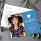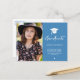 Trendy chic classic blue and white typography script and graduation hat making a stylish grad party invitation announcement postcard. ++++++++++ Easy to personalise with your photo, details and monogram / name initials on both sides! ++++++++++++++++++++ If you need a specific colour, please message the designer through the button below.