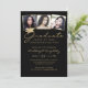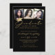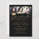 Elegant Graduation 3 Photos Script Cap Black Gold Invitation