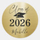 Elegant Graduation Faux Brushed Metallic Print Classic Round Sticker