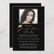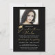 Elegant Graduation One Photo Black Gold Script Cap Invitation